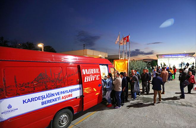 Gerektiğinde İstanbulluların gıda gereksinimlerine acil çözümler sunan Mobil Büfeler bu sefer aşure dağıtacak. İstanbul Büyükşehir Belediyesi (İBB) Lojistik Destek Merkezi´ne bağlı büfeler, yarın 19:30 ? 20:30 saatleri arasında İstanbul´un yedi farklı noktasında paylaşımın simgesi haline gelen aşure dağıtacak.