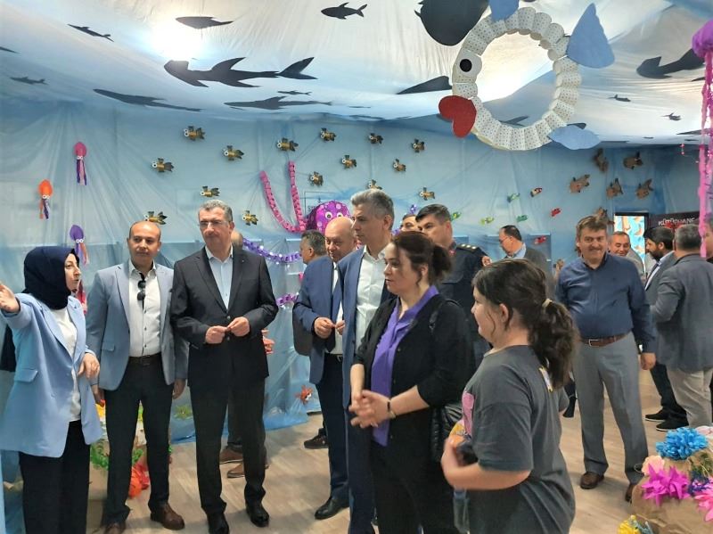 İlçe Protokolü 7 kıta Sergisinin açılışından sonra öğretmen Selma Kula ve minik öğrencileri tebrik ettiler. AHMET ILGAZLI-GÖNEN