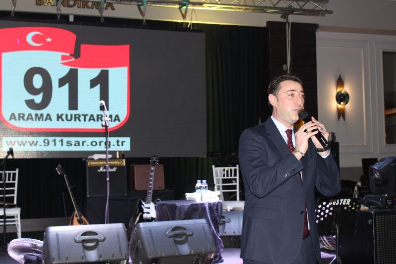 Grand Asya Oteldeki görkemli dayanışma gecesinde öncelikle 25 yılı geride bırakan 911 arama kurtarma derneğini geçmişten günümüze taşıyan film yayımlandı. Zaman zaman gözlerin yaşardığı izlenimin ardından gönüllülük esasına dayanan toplumsal çabaya mali katkıda bulunan Bandırma Ambalaj Sanayii Bantaş'ın kurucusu ve yönetim kurulu Başkanı Adnan Erdan başta olmak üzere, Paksan, Büyükşehir Belediye Başkanı Yücel Yılmaz ve Erdek Belediye Başkanı Mim. Hüseyin Sarı'ya plaket sunumunda bulunuldu.