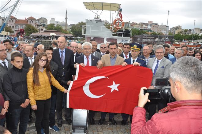 İskelede düzenlenen temsili karşılama töreninde, denizden römorkörle karaya çıkan iki kız öğrenci tarafından getirilen Türk bayrağı, Kaymakam Günhan Yazar´a teslim edildi. Buradaki törene, Kaymakam Yazar´ın yanı sıra Balıkesir Milletvekili Mehmet Tüm, İstanbul Milletvekili Barış Yarkadaş. 6. Ana Jet Üs ve Garnizon Komutanı, Hava Pilot Albay Selahattin Akalp, Yalova Belediye Başkanı Vefa Salman Bandırma Belediye Başkanı Dursun Mirza, daire müdürleri, siyasi parti temsilcileri, sivil toplum örgütleri, askeri birlikler öğrenciler ve vatandaşlar katıldı.