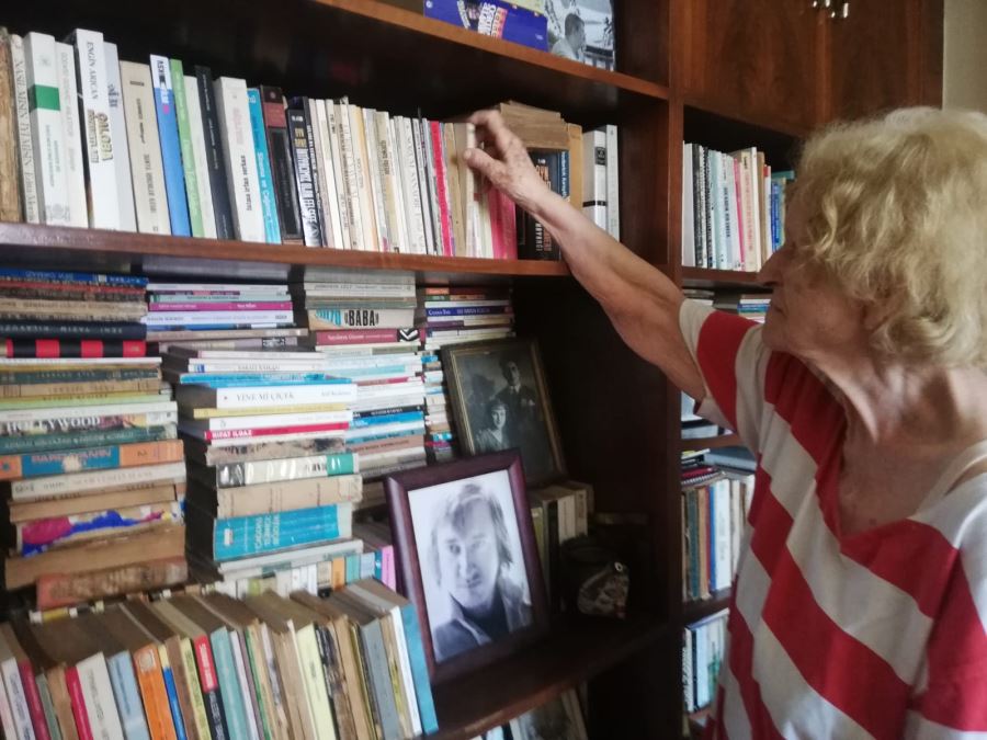 97 yaşındaki Yazar Pakize Başaran'ın kitaplığında yaşamını yitirmiş ünlü yazarların imzalı kitapları yer alıyor.