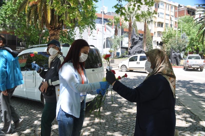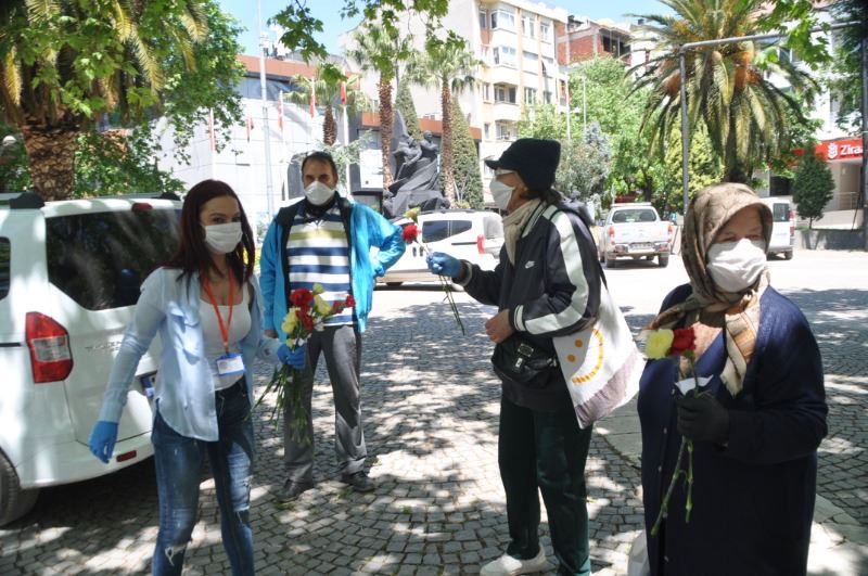 Erdek Belediye Başkanı Mim. Hüseyin Sarı, 65 yaş üzeri bayanların anneler gününü karanfil dağıtarak kutladı.