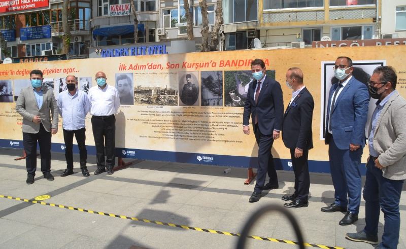 İşte bugün, Cumhuriyet Meydanımızda, tarihin gördüğü en şanlı mücadele;“İlk Adımdan Son Kurşuna” adıyla, anlatımlı fotoğraf sergimizle, Kurtuluş Savaşımızın tarihini ve önemini gözler önüne seriyoruz. Pandemi kuralları çerçevesinde, kadın-erkek tüm Bandırmalı hemşerilerimin gururla ziyaret edeceklerinden eminim. Bu sergiyle; sevdamız olan Bandırma adını taşıyan vapurla, yani İLK ADIMLA başlayan, Bandırma Ay Yıldız Tepesindeki SON KURŞUN’ LA, büyük bir zaferle sonuçlanan Kurtuluş Savaşımız adım adım anlatılmıştır.