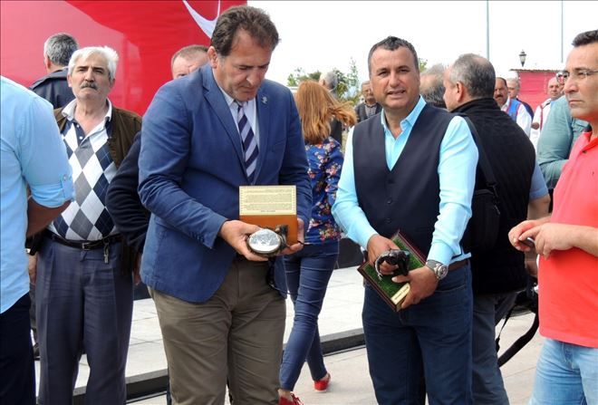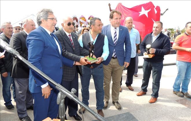 Anıtın açılışından önce ülkemizde Kırkpınar´ın kıspet yapma alanında ustası İrfan Şahin, Belediye Başkanı Dursun Mirza´ya, kıspetli bir plâket verdi. Daha sonra Bandırma Güreş İhtisas Kulübü Başkanı Orhan Turaçlı, yağlı güreşe destekleri nedeniyle Rumeli TV Spor Müdürü Mehmet Çelik ve Güreş Federasyonu Yağlı Güreşler Sorumlusu Tahir Yılmaz´a plâketlerini sundu.