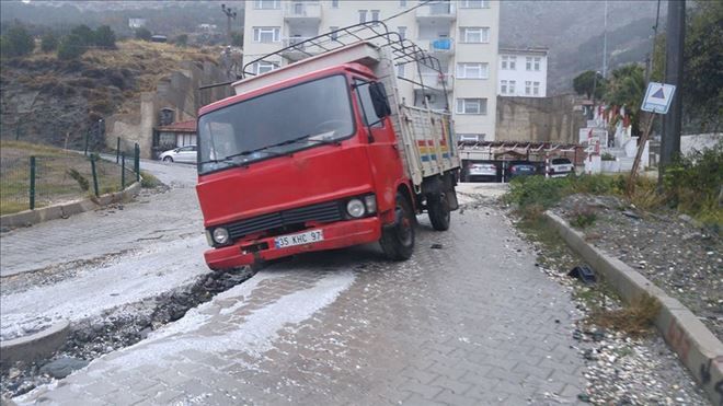 Marmara Adasında ilçe merkezini kırsal mahallelere bağlayan ana arterlerde açılan yollar, kamyonları içine alıyor.