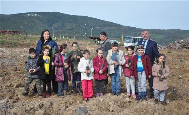 Orman İşletme Müdürlüğü tarafından Eimaden Asit Fabrikaları bünyesinde hazırlanan ağaçlandırma alanına giden Yaman Egeli İlkokulu 2/c ve 2/b sınıfları fidan dikti.