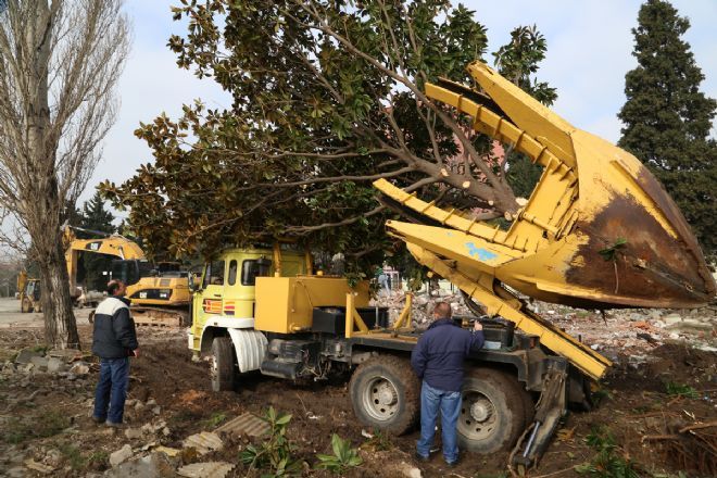 Bandırma Belediyesi Kapalı pazar yeri proje alanlarında bulunan ağaçların yok olmasını önlemek amacıyla, bu ağaçları sökerek farklı alanlara naklediyor.