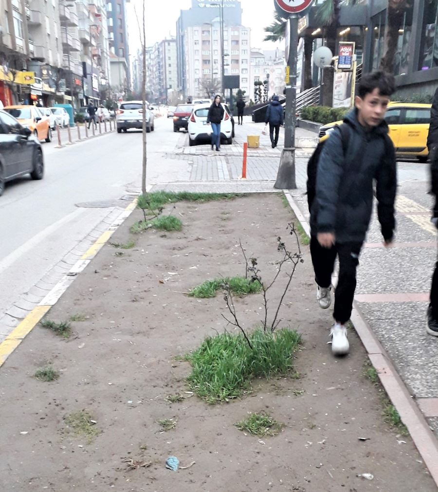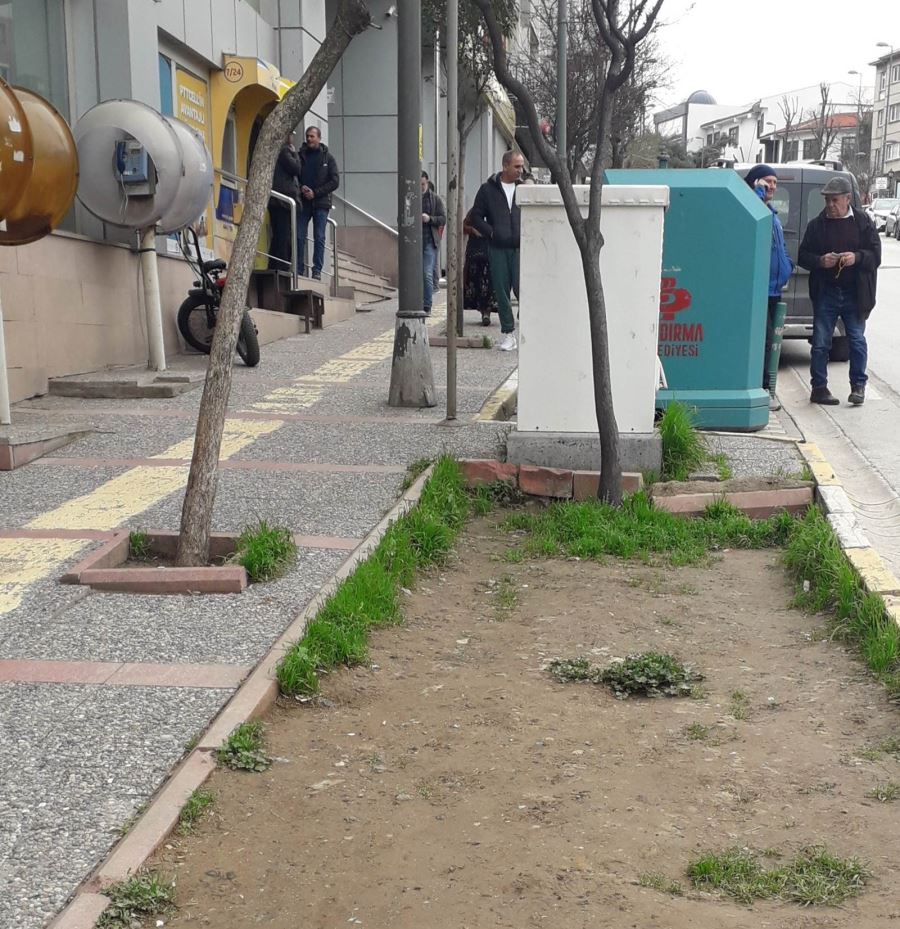 Yaklaşık bir yıldan beri boş kalan yerlere yeni bir fidan dikilmeyince çirkin görüntü devam ediyor. Öte yandan biri PTT önünde, diğeri Arıt boya önündeki kaldırımda daha önce içinde çiçekler bulunan alan bakım yapılmayınca çiçekler kurudu.