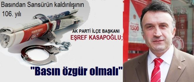 AKP Bandırma İlçe Başkanı Eşref Kasapoğlu, Türk basınından sansürün kaldırılmasının 106. yıl dönümü dolayısıyla bir mesaj yayınladı.