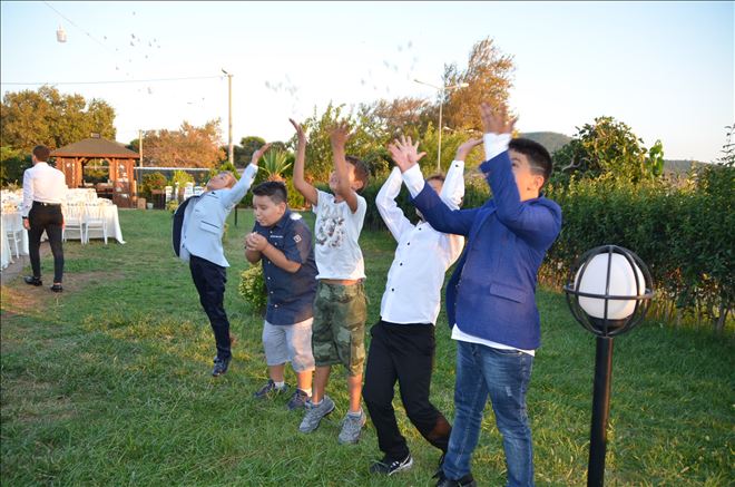 Tuğba & Gökmen Kıymaç ilk Mürvetleri biricik evlatları Uras Kıymaç´ın erkekliğe ilk adımı attığı düğün töreninde iki ailenin büyük anneler, büyük babalar, amcalar, halalar, enişteler, dayılar ve kuzenler başta olmak üzere Bandırma-Bursa ve Erdek´ten yakın eş ve dostların hazır bulunduğu muhteşem tören akşam saatlerinde davul zurna ile başlayıp, orkestra ile devam eden gece geç saatlere dek sürdü.