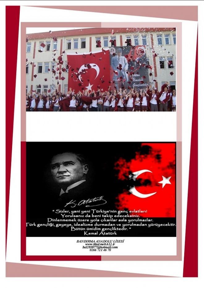 Bandırma Anadolu Lisesi 2013/2014 eğitim öğretim yılı mezuniyet şöleni 29 Mayıs 2014 Perşembe günü saat 17:30 da okul bahçesinde yapılacak.