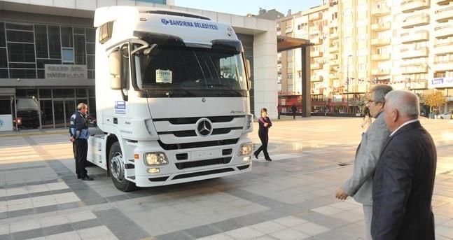 Mirza: ?Bandırma Belediyesi olarak hem merkez mahallelerimize hem de kırsal mahallelerimize birçok alanda hizmet götürüyoruz. Bu açıdan hizmetlerimizi daha kaliteli ve hızlı bir şekilde sürdürebilmek adına araç filomuzu imkânlarımız ölçüsünde genişletiyoruz. Son olarak Fen İşlerimizde özellikle asfalt çalışmalarında ve diğer çalışmalarda kullanmak üzere yeni 1 adet TIR´ı belediyemiz araçları arasında dahil ettik. Bandırmamıza hayırlı olsun? dedi.