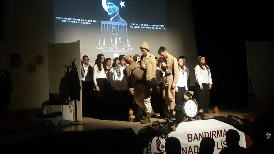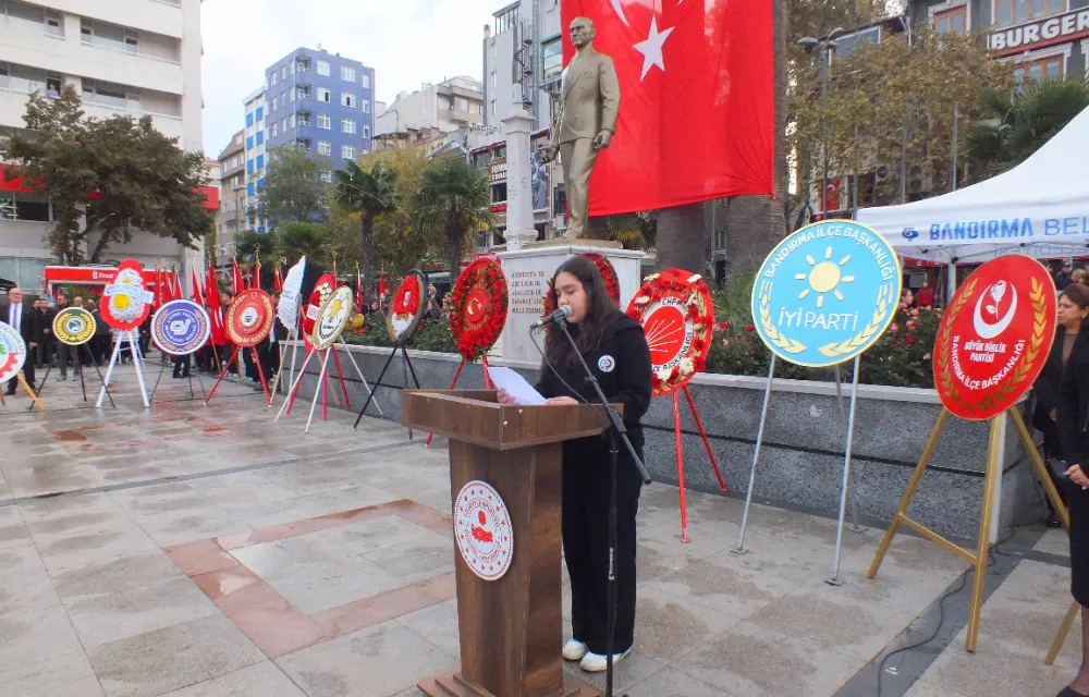 Cumhuriyet alanındaki tören anıta çelenklerin sunulması ile başladı. Bandırmalılar her zamankinin aksine bugün olağan dışı bir katılım ile Ata'ya olan bağlılığını gösterdi.