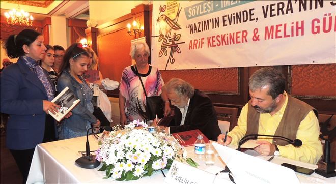Konukların el yazılarıyla yazdıkları notları ve bugüne kadar görülmemiş fotoğrafları da ilk kez gün ışığına çıkaran bu nadide yapıtı hazırlayan Arif Keskiner ve Melih Güneş, katılımcıların uzun sıra oluşturduğu imza etkinliğinde ?Nazım´ın Evinde Vera´nın Sofrasında? adlı eserlerini imzaladılar.