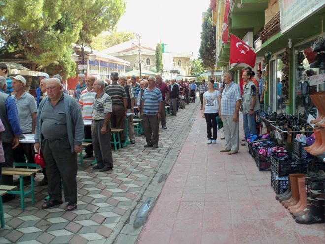 Öğle namazında Sarıköy çarşı camiinde mevlit okutularak başlayan ve Atatürk meydanında yapılan törene Sarıköy Jan .Baş Çvş. Mustafa Gülmen, Edincik Belediye Başkanı Mehmet Yağcı, Okul Müdürleri, Öğretmenler ve halk katıldı.