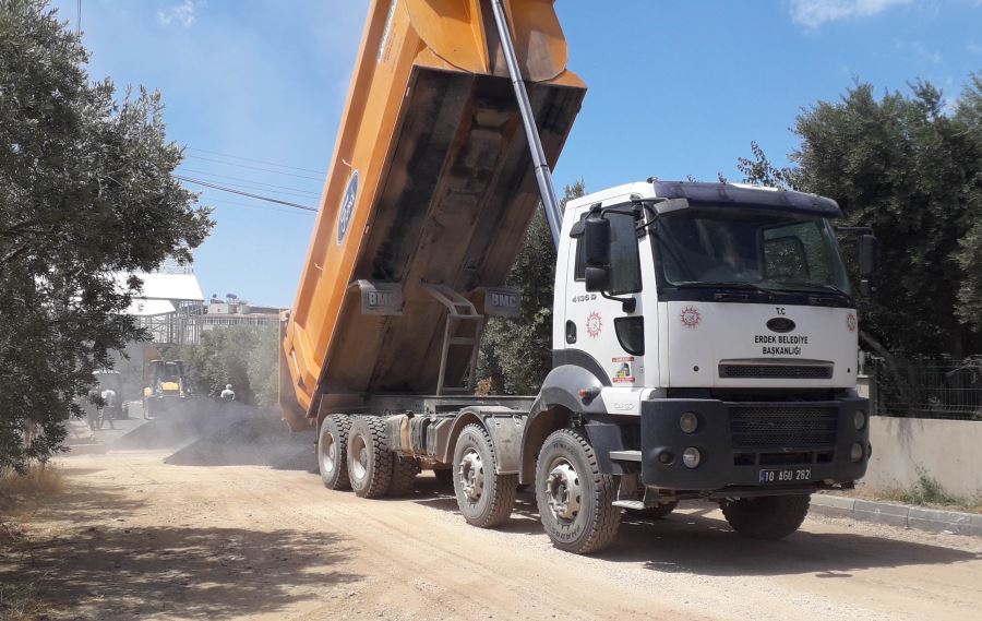 Erdek belediye eski başkanı Hamit Nural’ın yaklaşık 25 yıl önce yapılaşmaya açtığı ve o günden beri yapılan alt yapı çalışmaları nedeniyle toprak halde bulunan Sahil Mahallesi’nin tüm toprak olan sokaklarının asfalt döşeme ve kaldırım işleri hızla devam ediyor.