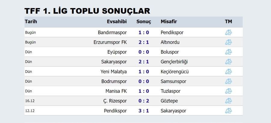 Bandırmaspor 90+5 lik karşılaşmanın son dakikasında Kerim Avcı'nın ayağından gelen gol ile karşılaşmayı 1-0 kazanırken, haftayı 3 puan ile kapatıp, puanını 28'e taşıdı.