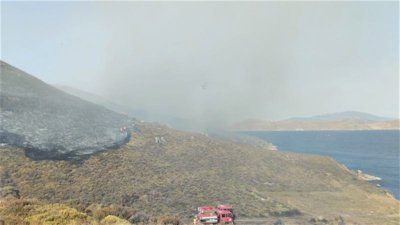 Avşa Adası'ndaki yerleşime uzak kırsal bölgede meydana gelen arazi yangınının bölgeye atılan cam şişelerden çıkmış olabileceği düşünülüyor.