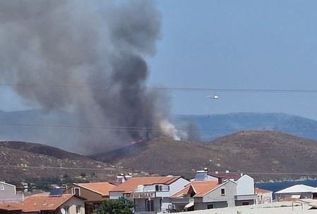 Avşa’daki, arazi yangınına Yangına 2 uçak, 2 helikopter, 1 ilk müdahale aracı, 1 arazöz, 2 vidanjör ve 3 itfaiye aracıyla müdahale edildi.