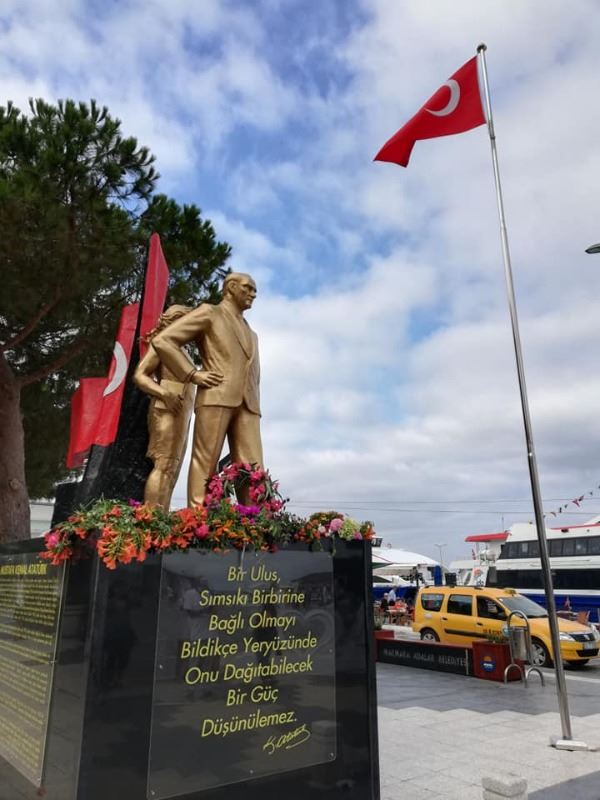 Avşa iskele meydanında bulunan Atatürk büstüne çiçeklerin bırakılıp saygı duruşunda bulunulması ardından küçük kayıklar tarafından denizde fener alayı yapıldı.