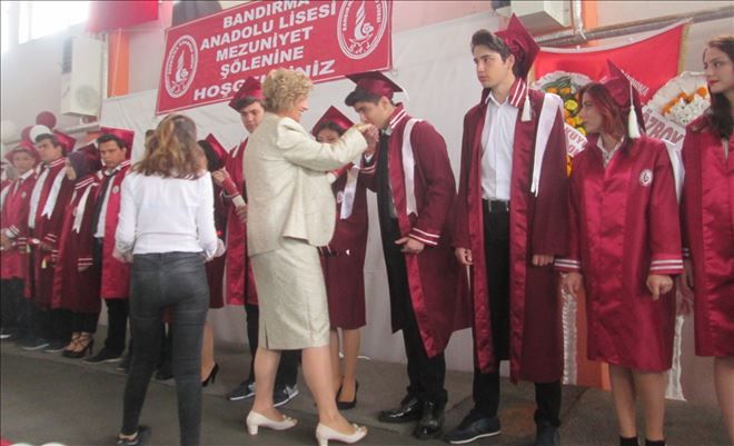 Okulun spor salonunda gerçekleşip, Bandırma Belediye Başkan vekili Mehmet Sert´in de izlediği tören, okul müdürü Ali İhsan Tetik´in konuşmasıyla başladı. Tetik, mezun olan öğrencilere seslenirken, ?Sizlerin, dünyadaki değişimi kavrayan ve ülkemizi çağdaş uygarlık düzeyine yükseltmek için çaba harcayacak gençler olacağına yürekten inanıyorum? dedi.