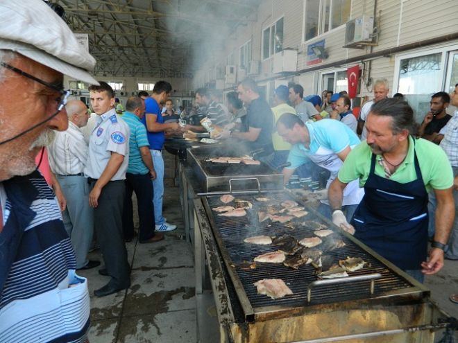 Sezon`un bereketli geçmesi dileği ile Balık halinde Halil İbrahim softası kuran Bandırmalı balıkçılar, kömür ızgarasında 3000 porsiyon balık ekmek dağıtarak ilk kez sezona şenlik havasında girdiler.