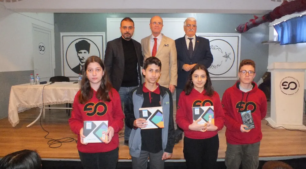 Söyleşinin ardından iş insanı Âdil Levent Coşkun, başarılı öğrencilere tabletlerin yanı sıra tüm öğrencilere gıdasal ikramda bulundu.