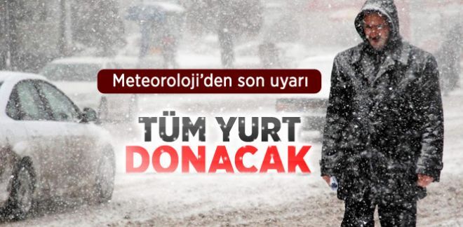Türkiye, yarın, Balkanlar üzerinden gelecek yeni bir soğuk ve yağışlı havanın etkisine girecek. Meteoroloji Genel Müdürlüğünden yapılan açıklamaya göre, Marmara, Ege, Akdeniz`in iç kesimleri, İç Anadolu, Karadeniz, Doğu ve Güneydoğu Anadolu`nun batısı ile Ardahan ve Hatay çevrelerinde yarın yağış bekleniyor. Hava sıcaklıklarının 5 ila 7 derece düşeceği, hafta ortasında tüm yurtta kar yağışı görülürken, yurdun en sıcak bölgesi olan Antalya civarında bile don uyarısı yapılıyor.