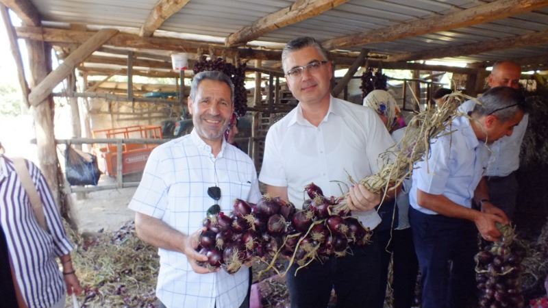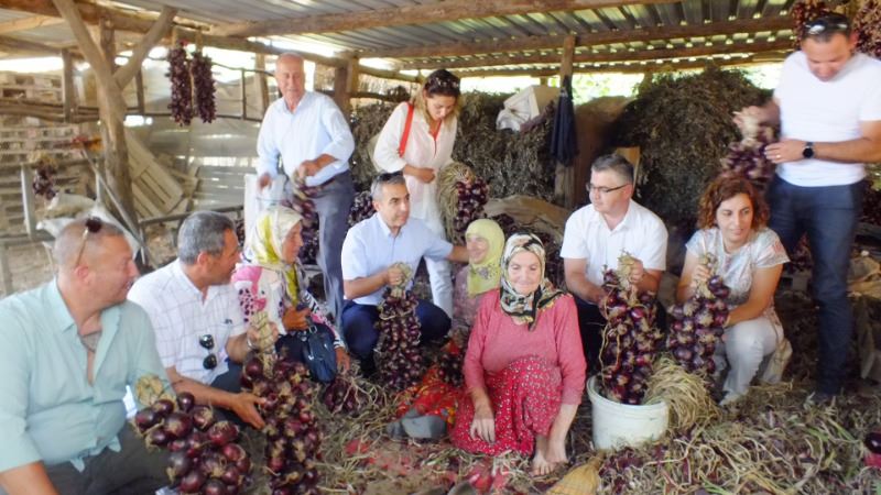 Ballıpınar’daki proje tanıtım toplantısı için bugün Baştan Erdek kaymakamı A. Atakan Atasoy eşi Özge hanım olmak üzere Tarım, Orman il Müdürü Erkan Alkan, İl Ticaret Müdürü İlhan Pehlivan, AK Parti ilçe başkanı Musa Alioğlu, MHP ilçe Başkanı Ahmet Davran, Ticaret Odası Başkanı Turan Gün, Tarım, Orman İlçe Müdürü Dilek Işıktaş, Ziraat Odası Başkanı Mustafa Saçıl, Engelli ve Engelli aileleri Derneği Başkanı Meliha Söğüt, Meclis Üyesi Y. Ceyhun Mırız, Zeytin Kooperatif Müdürü Selçuk Karagöz, İlçe Jand. Bölük Komutanı J. Yzb. H. İbrahim İlanku, Milli Eğitim İlçe Müdürü Şafak Turan, İlçe sağlık Müdürü Dr. Mahmut Ekiz, Orman İşletme Şefi Ayşe Andıç, Bazı muhtarlar ve kalabalık Ballıpınarlı vatandaşlar, Mor soğan örgü kamelyalarını dolaşarak, soğan örgüsü yapan üreticilere sağlık ve bereket dileğinde bulundular.