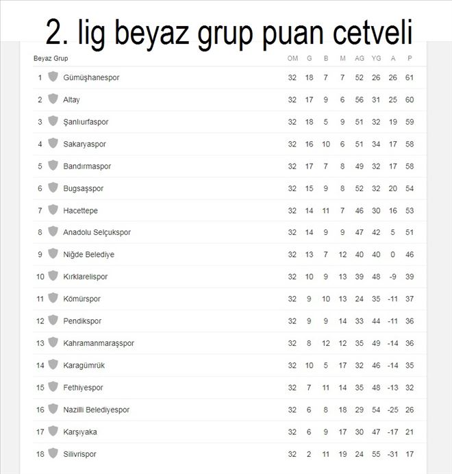 Kalan maçları: Kırklarelispor, Sakaryaspor (D)