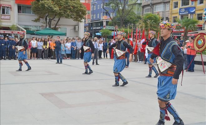Cumhuriyet alanında anıt´a çelenklerin sunulması ile başlayan tören saygı duruşu ve istiklal marşının okunması ile son bulurken tören öncesi tören alanına gelen Kaymakam Tuncay Sonel, Belediye Başkanı Dursun Mirza, Garnizon Komutanı Hv. P. Tug. Gen. Mustafa Rüştü Çelenk, Milletvekili Sema Kırcı vatandaşların bayramını kutladılar.