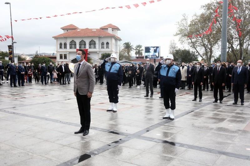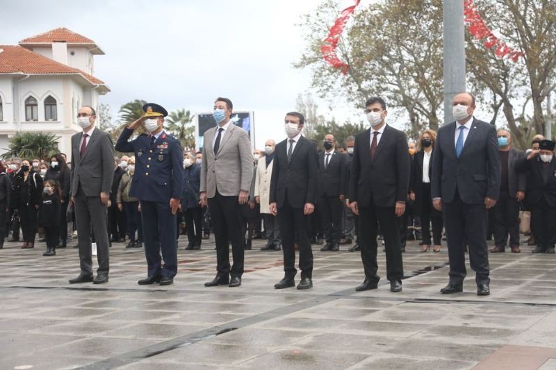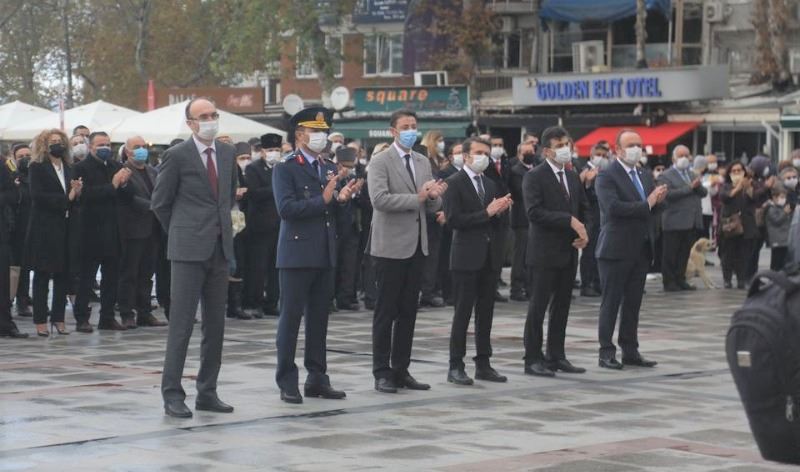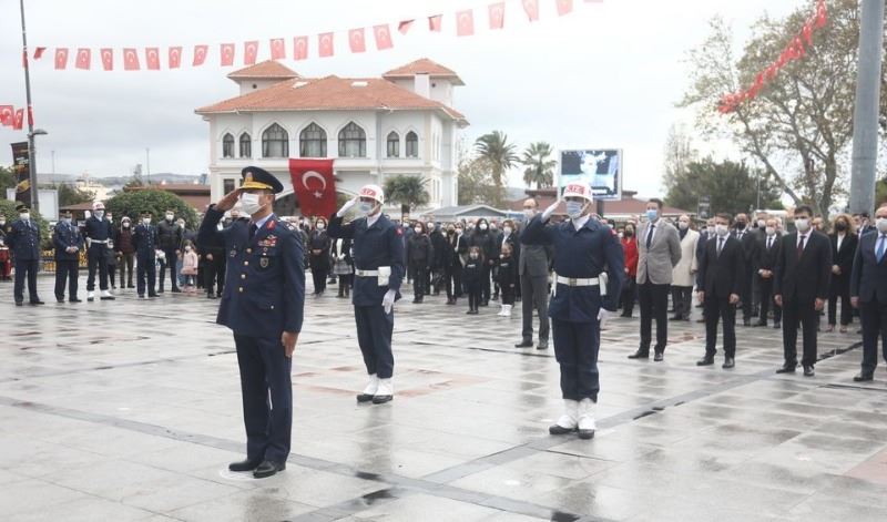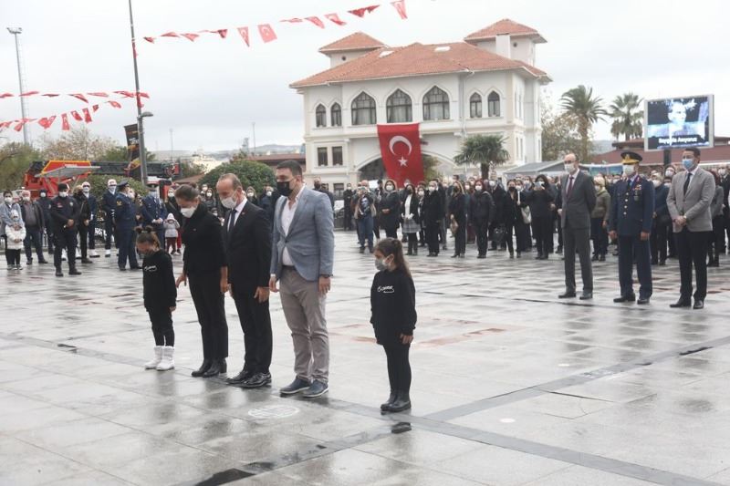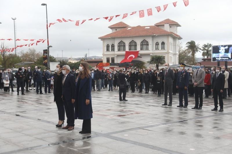 Bandırma'da Atatürk anıtına çelenklerin sunulmasıyla başlayan 10 Kasım tören programı, saatlerin 09.05’i göstermesiyle tüm Türkiye ile birlikte Atamıza saygıya duruşuna geçildi.