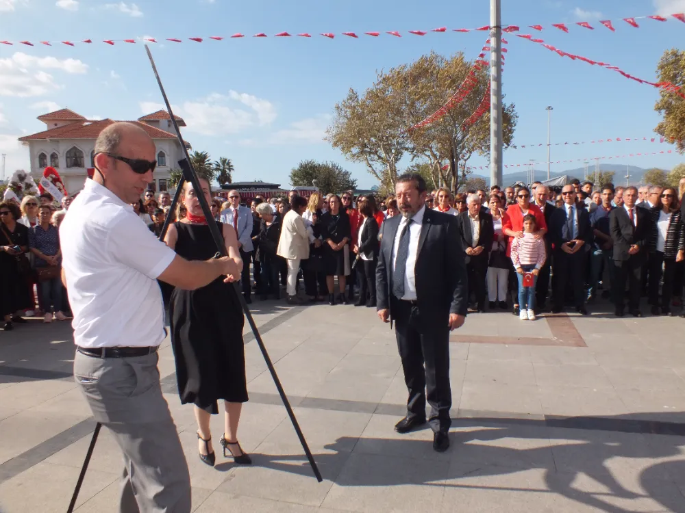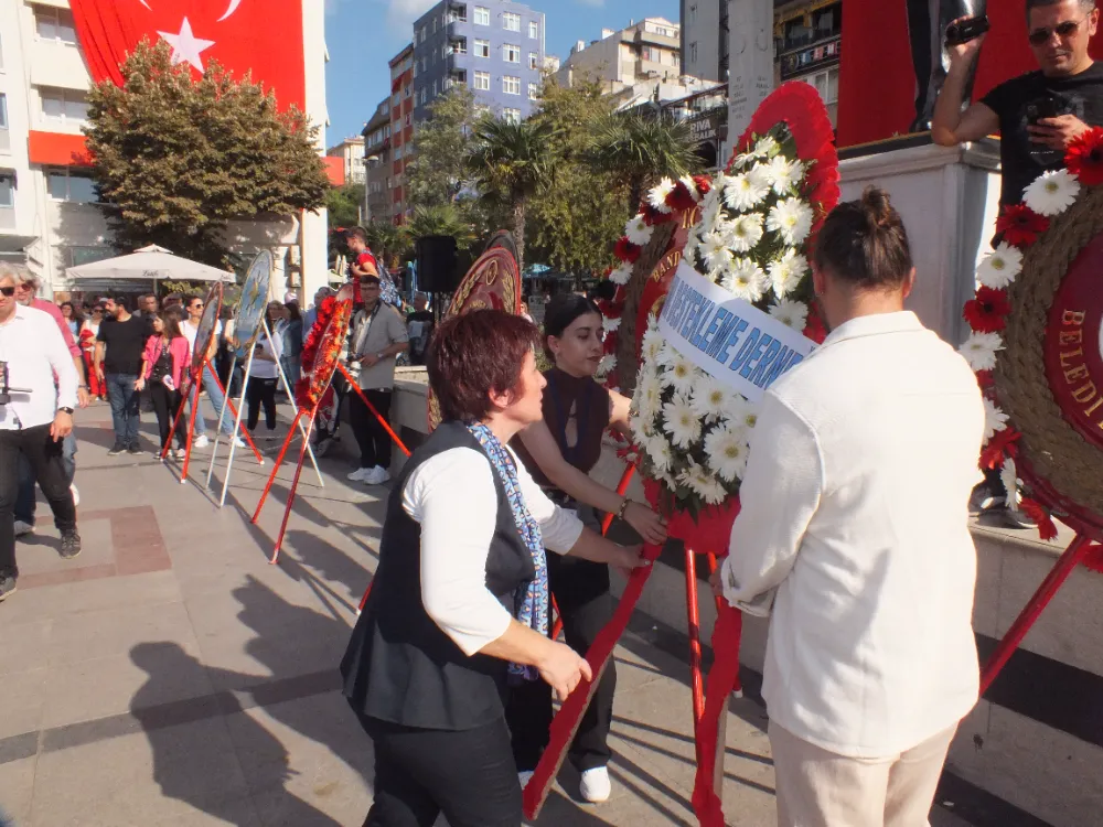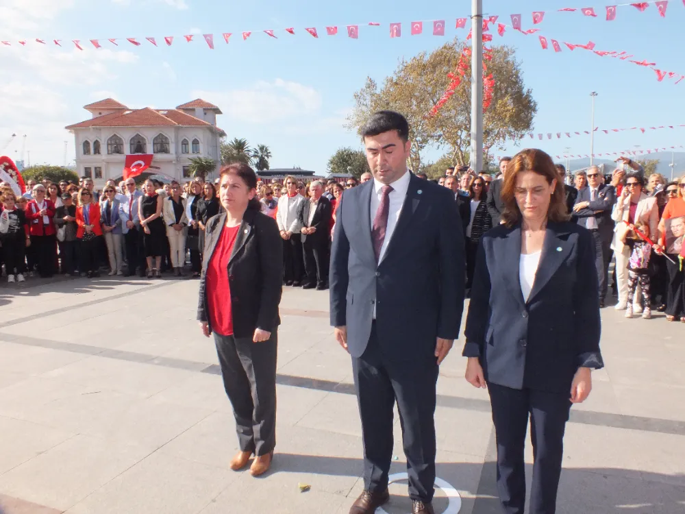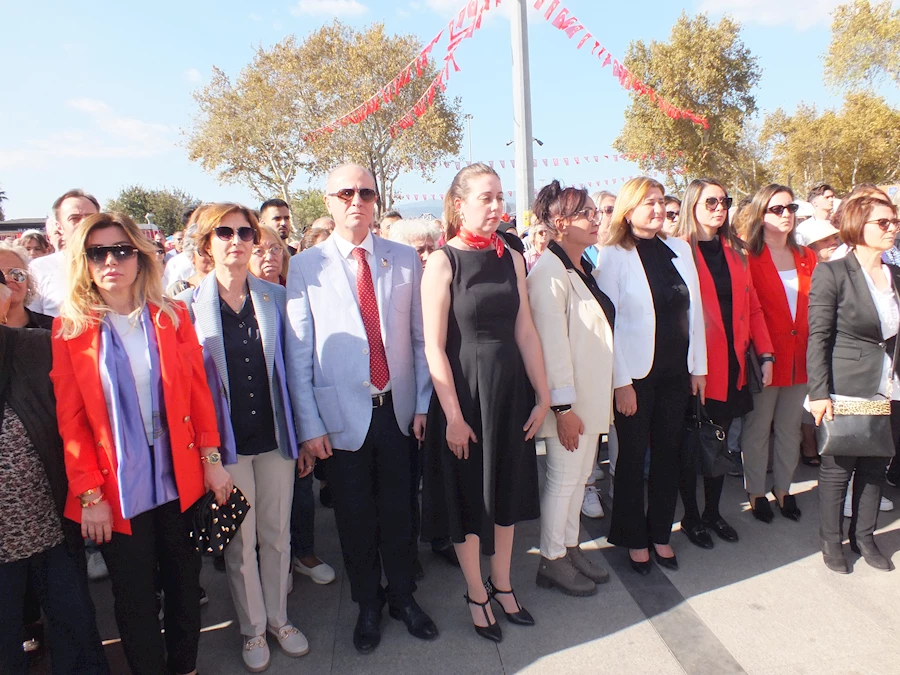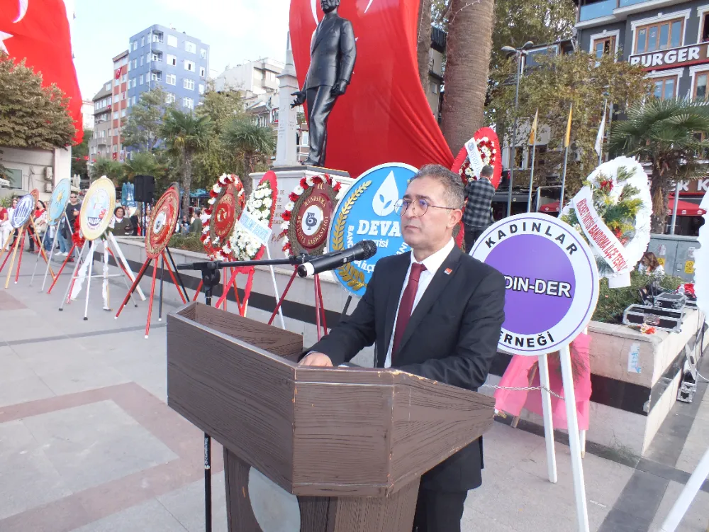 Saygı duruşu ve istiklal marşının okunması ardından CHP ilçe Başkanı, Mehmet Atak, ADD Başkanı Zeynep Yeşiltaş, ÇYDD başkanı Av. Ece Başaran ve Belediye Başkanı Tolga Tosun 29 Ekim Cumhuriyet Bayramı ve 100. yılı gündemine dair konuşmalar yaptılar.