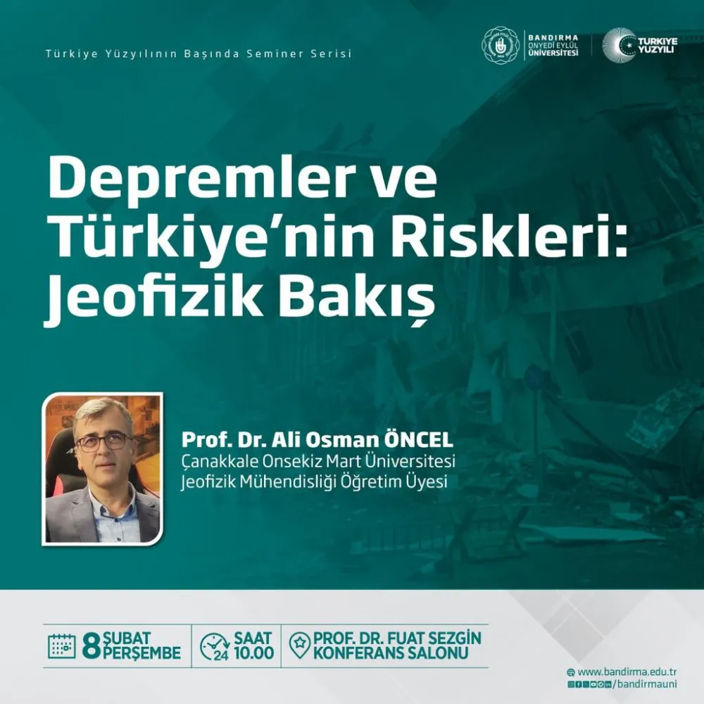 Bandırma Onyedi Eylül Üniversitesi’nde, “Depremler ve Türkiye’nin Riskleri: Jeofizik bakış” konulu konferans düzenlenecek.