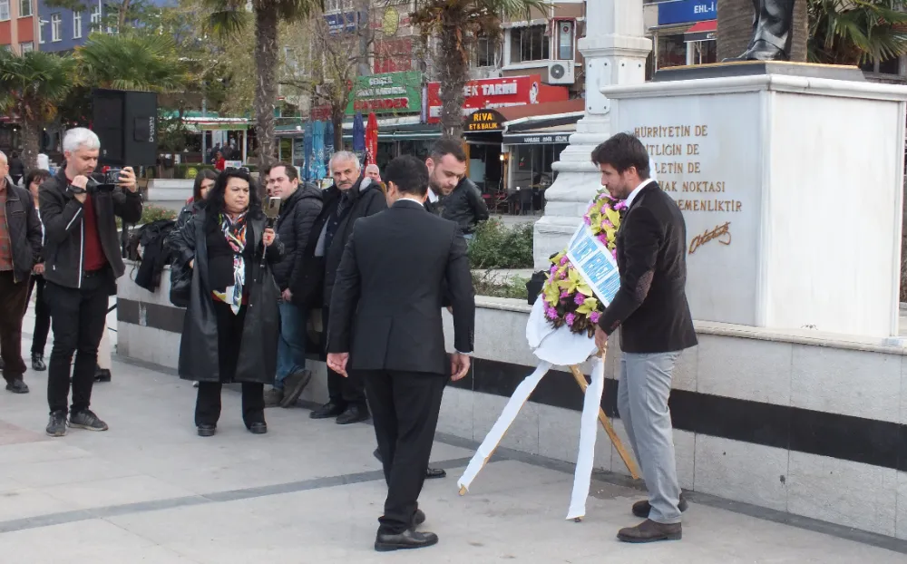 Saygı duruşu ve işaret diliyle birlikte seslendirilen İstiklal Marşı’nın ardından Bandırma Sosyal Hizmet Merkez Müdürlüğü ve engelli dernekleri, Atatürk anıtına çelenk sundular.