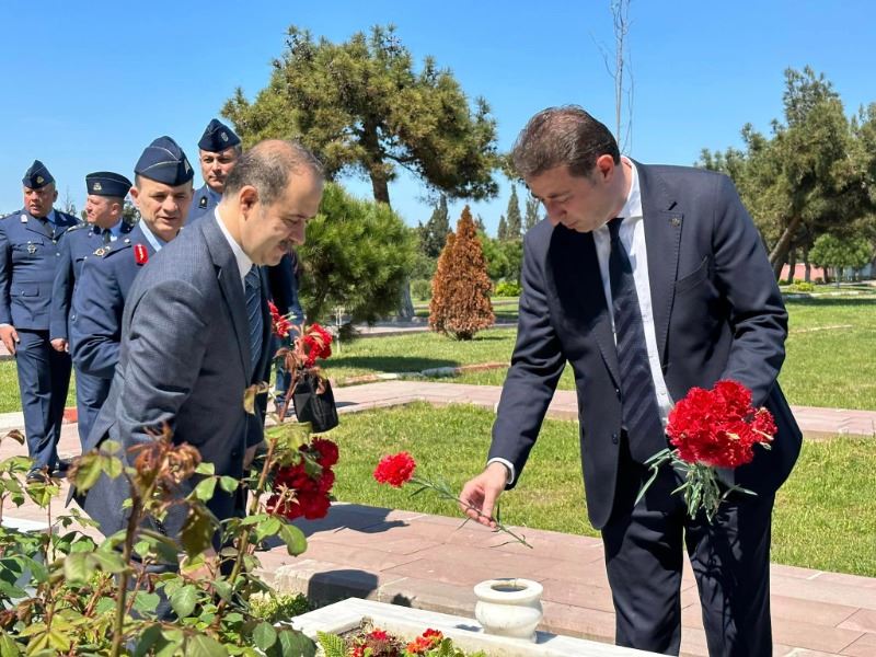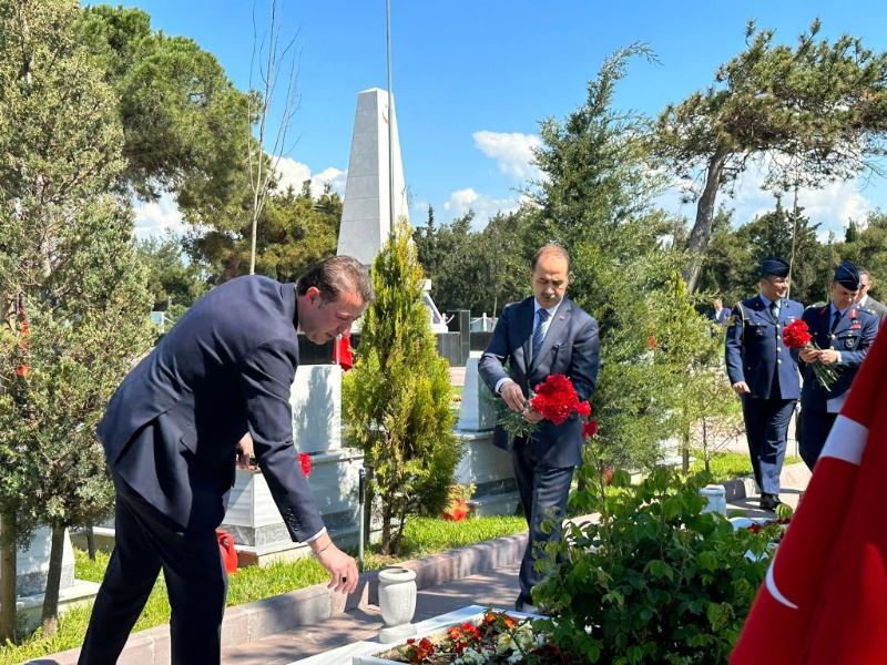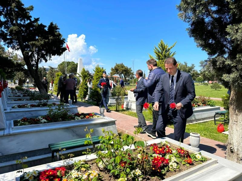 Protokol ve beraberindekiler daha sonra şehitliğe geçerek burada okunan kuran ve duanın ardından şehit kabirlerine karanfil bıraktılar.