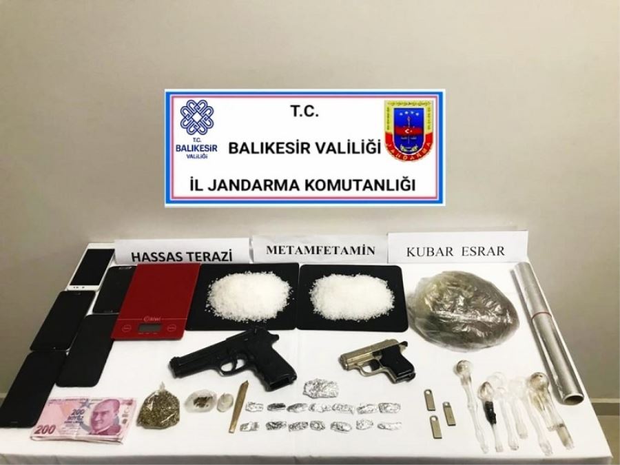 Balıkesir İl Jandarma Komutanlığı ekipleri, Bandırma’da örgütlü uyuşturucu madde ticareti yaptıklarını belirledikleri 8 kişiyi yakaladı. Bu kişilerin evlerinde yapılan aramalarda 1.242 gram metamfetamin, 545 gram kubar esrar, 195 gram bonzai, 250 gram toz esrar, 87 gram kenevir tohumu, 15 adet uyuşturucu kullanma aparatı, 2 adet tabanca, 20 adet sikke, 2 adet hassas terazi, 8 adet cep telefonu, 3 adet harici bellek ve suçtan elde edilen 12.655 lira ele geçirildi. Olayla ilgili 8 kişi yakalanırken, 2 kişi aranıyor.
