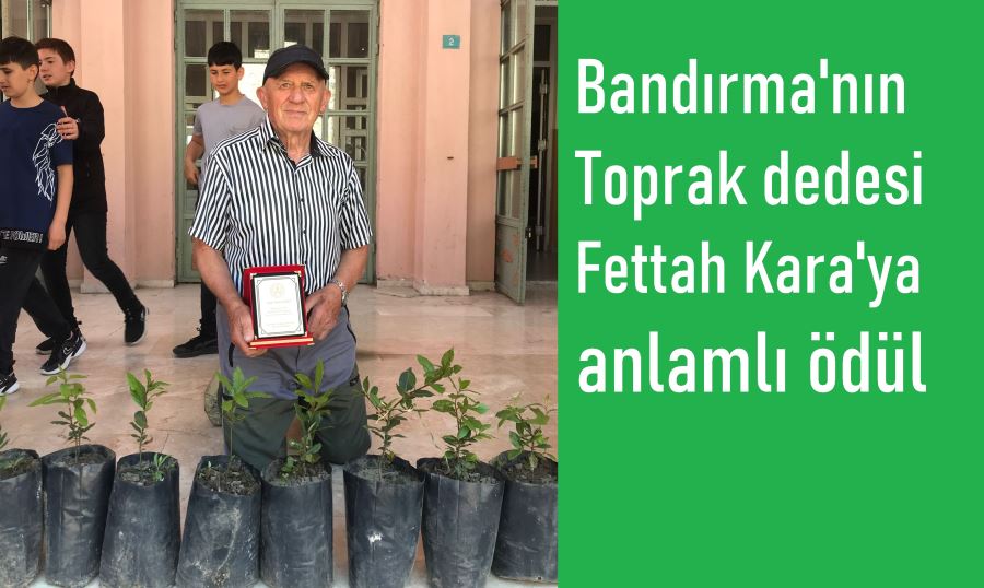 Bandırma’nın “Yaşayan Toprak Dedesi” olarak bilinen Fettah Kara, Şehit Pilot Üsteğmen Cemil Kaya İlkokulu tarafından plâketle ödüllendirildi.