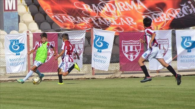 Futbolcuların kurban kesimi ardından kramponlarına kurban kanı sürmesi ardından Bandırmaspor´un minik futbolcuları küçük bir gösteri maçı yaptı.