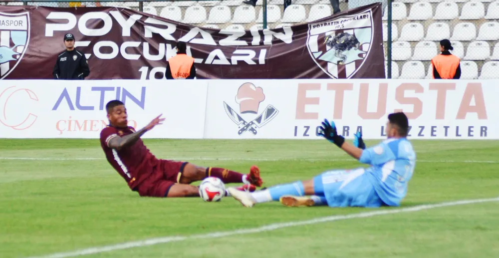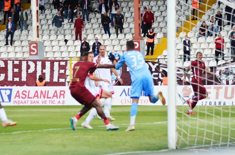 Bandırmaspor, 11. dakikada öne geçti. Hikmet Çiftçi, bir ara pasıyla topu Gani Burgaz’a kazandırdı. Bu oyuncu, “al da at” dercesine topu kale yakınındaki Douglas Tanque’ye kazandırdı. Tanque, topu ağlara yuvarladı: 1-0