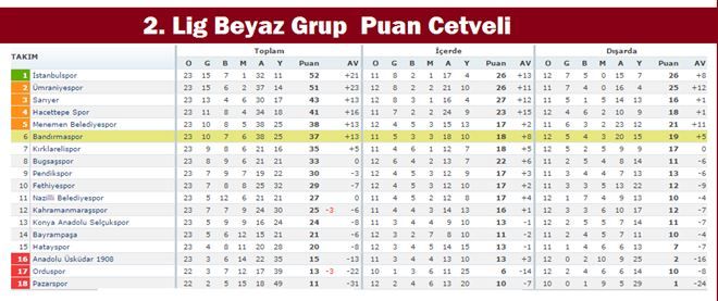 Grupta İstanbulspor, 52 puanla liderlik koltuğunda oturuyor.