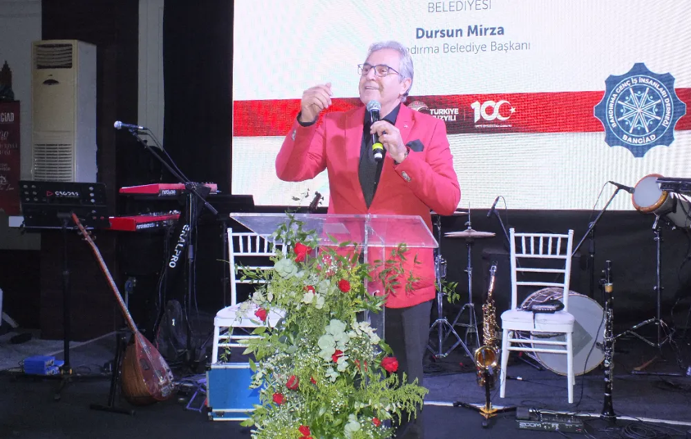 Geceye Bandırma Belediye Başkanı Dursun Mirza, Erdek Belediye Başkanı Burhan Karışık, Bandırma Ticaret Odası Başkanı Bahadır Çolak ve Erdek Ticaret Odası Başkanı Hüseyin Uz ile kalabalık bir topluluk katıldı.