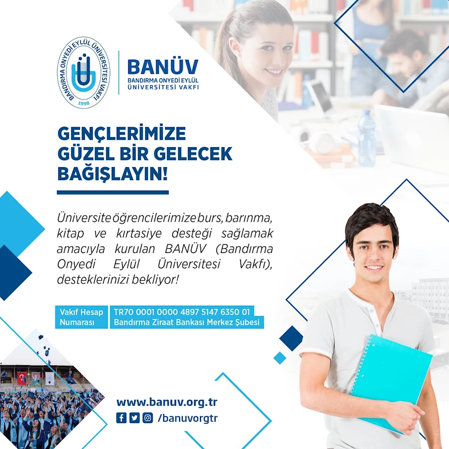 Sizleri, birlikte daha fazla gencin eğitimine ışık tutmak ve onların hayatlarına dokunmak için el birliğiyle çalışmaya ve Bandırma Onyedi Eylül Üniversitesi Vakfı’na destek olmaya davet ediyoruz. BANÜV’e yapacağınız her bağış, öğrencilerimizin geleceğini aydınlatacaktır. Destekleriniz için şimdiden teşekkür ederiz." denildi.