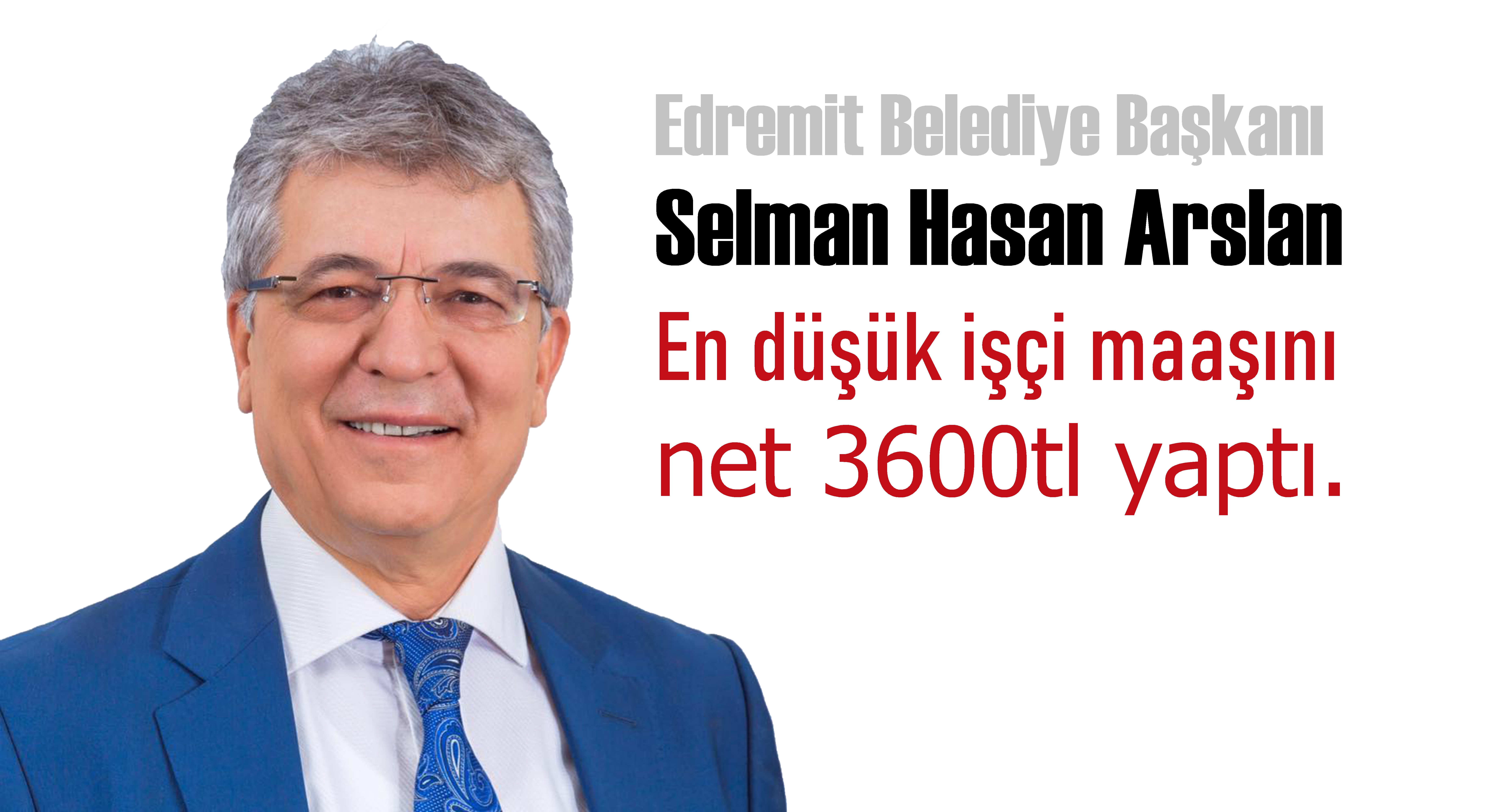 CHP’li Edremit Belediye Başkanı Selman Hasan Arslan, Edremit Belediyesi bünyesinde çalışan her bir işçi için en düşük maaşı net 3600 TL olarak açıkladı.