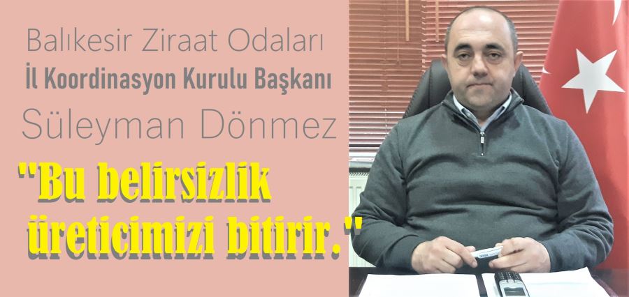 Balıkesir Ziraat Odaları Koordinasyon Başkanı ve Bandırma Ziraat Odası Başkanı Süleyman Dönmez, Gerçekleştirdiği basın toplantısında, Hayvancılıkta Yem, Zirai mücadelede ilaç, Mazot ve Gübredeki belirsizliğin Türk Çiftçisini bitirdiğini açıkladı.