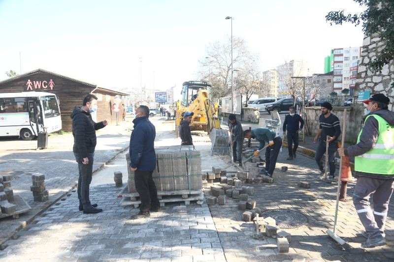 Bandırma Belediye Başkanı Av.Tolga Tosun, hafta sonunda da mesaisine devam ederek Belediye çalışmalarını takip etti. Hafta sonunda uygulanan sokağa çıkma kısıtlaması nedeniyle trafik akışının olmamasını fırsat bilen ekipler yol bakım ve onarım çalışmalarını yerine getirdi. Bu çalışmalarda Halk Otobüsleri Durağının ön caddesi olan Mehmet Akif Ersoy Caddesinde belediye ekipleri parke tamir çalışmalarını tamamladı. Çalışmaları Başkan Tolga Tosun yerinde takip etti.