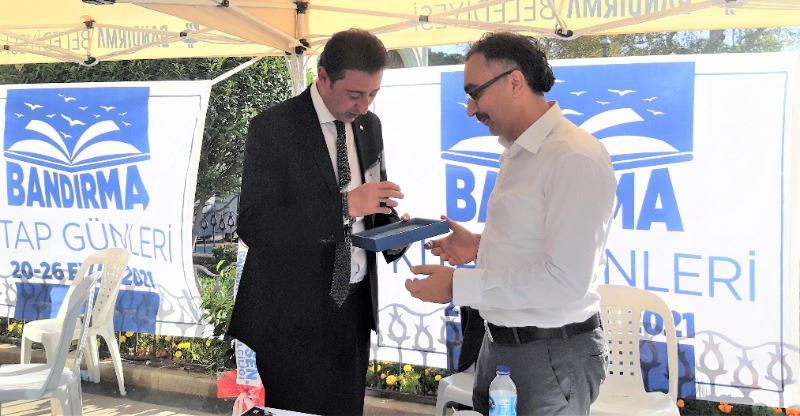 Başkan Av. Tolga Tosun Bandırmalı yazarlar stantına yaprığı ziyarette, yazarla ile tek tek görüştü, sohbet imkanı buldu. Başkan Tolga Tosun Bandırmalı yazarlara katılımlarından dolayı özel hazırlanmış plaket verirken, Bandırmalı yazarlar da kendisine imzaladıkları kitaplarını sundular.