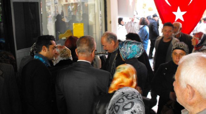 Sosyal market önünde kuyruklar oluşturan fakir fukara, bayramda çoluk çocuğuna giydirecek bir kıyafet, bir ayakkabı, bir çorap bulmanın mutluluğunu yaşadı.