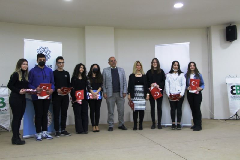 Daha sonra, 2022 Tubitak 2204 53. Lise Öğrencilerinin Araştırma Proje Yarışmasında bölge finalinde derece alan, öğrencilerin ödül töreni de yine Bandırma Bilim Sanat Merkezi’nde gerçekleşti. Programda konuşan İlçe Milli Eğitim Müdürü Mutlu Aslan burada yaptığı konuşmada Bandırma Milli Eğitim Müdürü olarak şahsı ve kurumu adına öğretmen ve öğrencilerimiz bizleri son derece gururlandırdı diyerek, öğrencilere kendinizle ne kadar guru duysanız azdır, Okullarımız hazırladıkları 8 Proje ile Bursa bölge Finallerine katılmaya hak kazandı.11 Mart 2022 tarihinde sonuçlanan yarışmada, önce 8 proje yarışmalarda Final değerlendirmelerine kaldı. Final değerlendirmelerinde okullarımız 3 birincilik ve 2 ikincillik alarak büyük bir başarıya imza attılar.”dedi Konuşmanın ardından öğrenci ve öğretmenlere ödülleri dağıtıldı. Ahmet PESEN