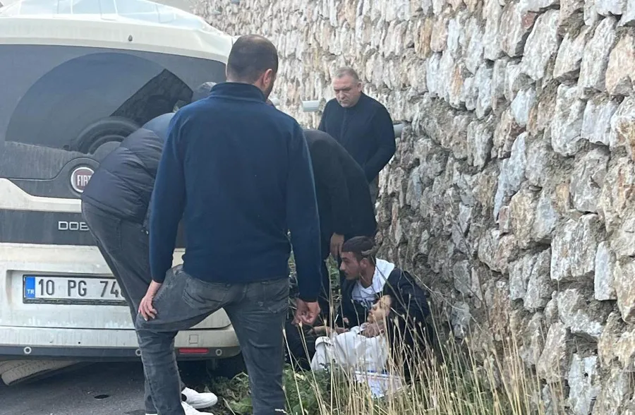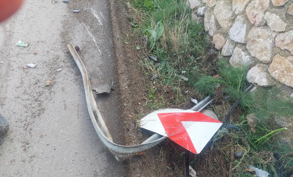 Sürücünün bir anlık dalgınlığı otomobilin yoldan çıkmasına ve yolun kenarında bulunan taş istinat duvarına çarpması neden oldu.
